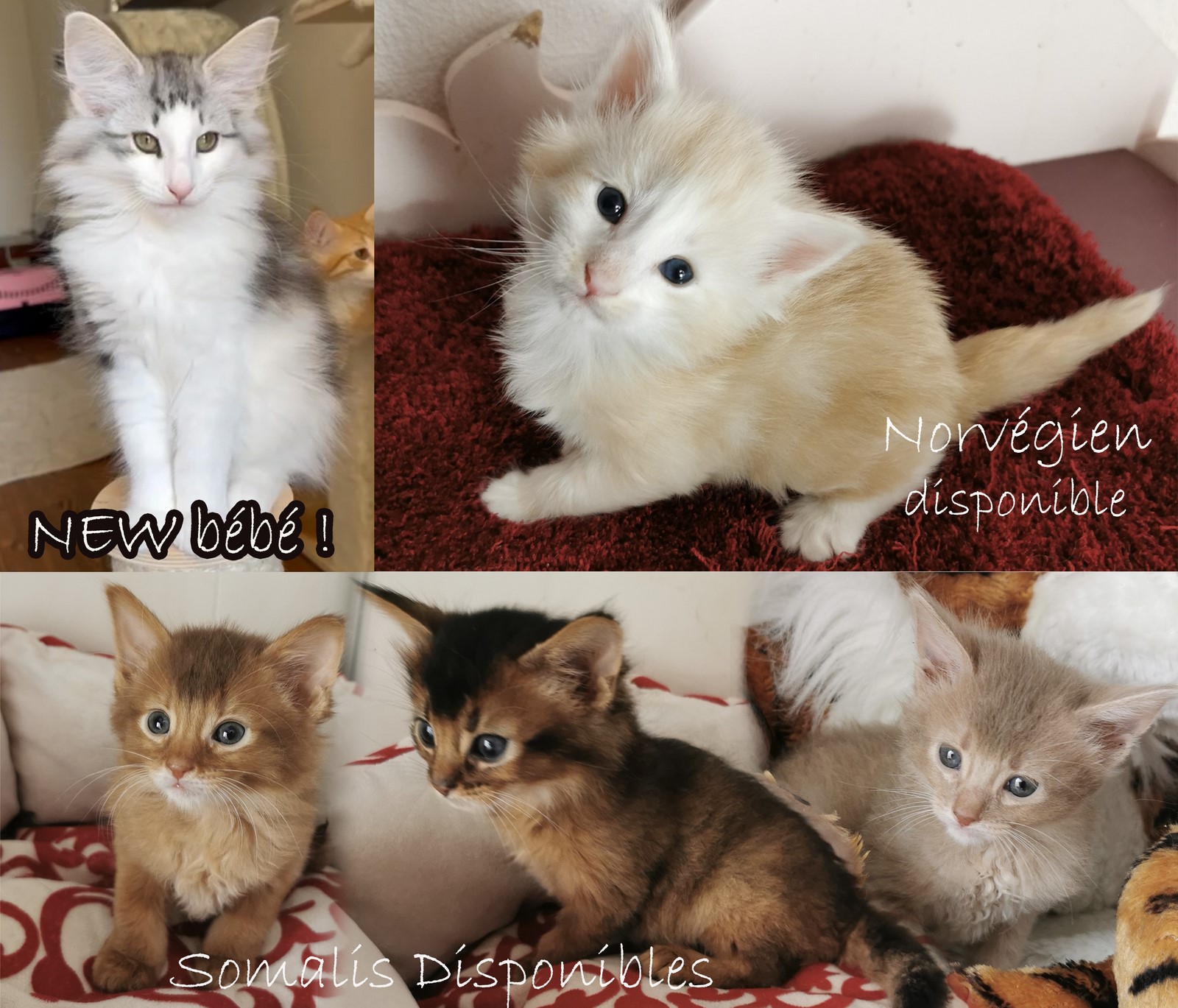 -Des chatons Norvégiens et Somalis attendent de belles familles pour les choyer...