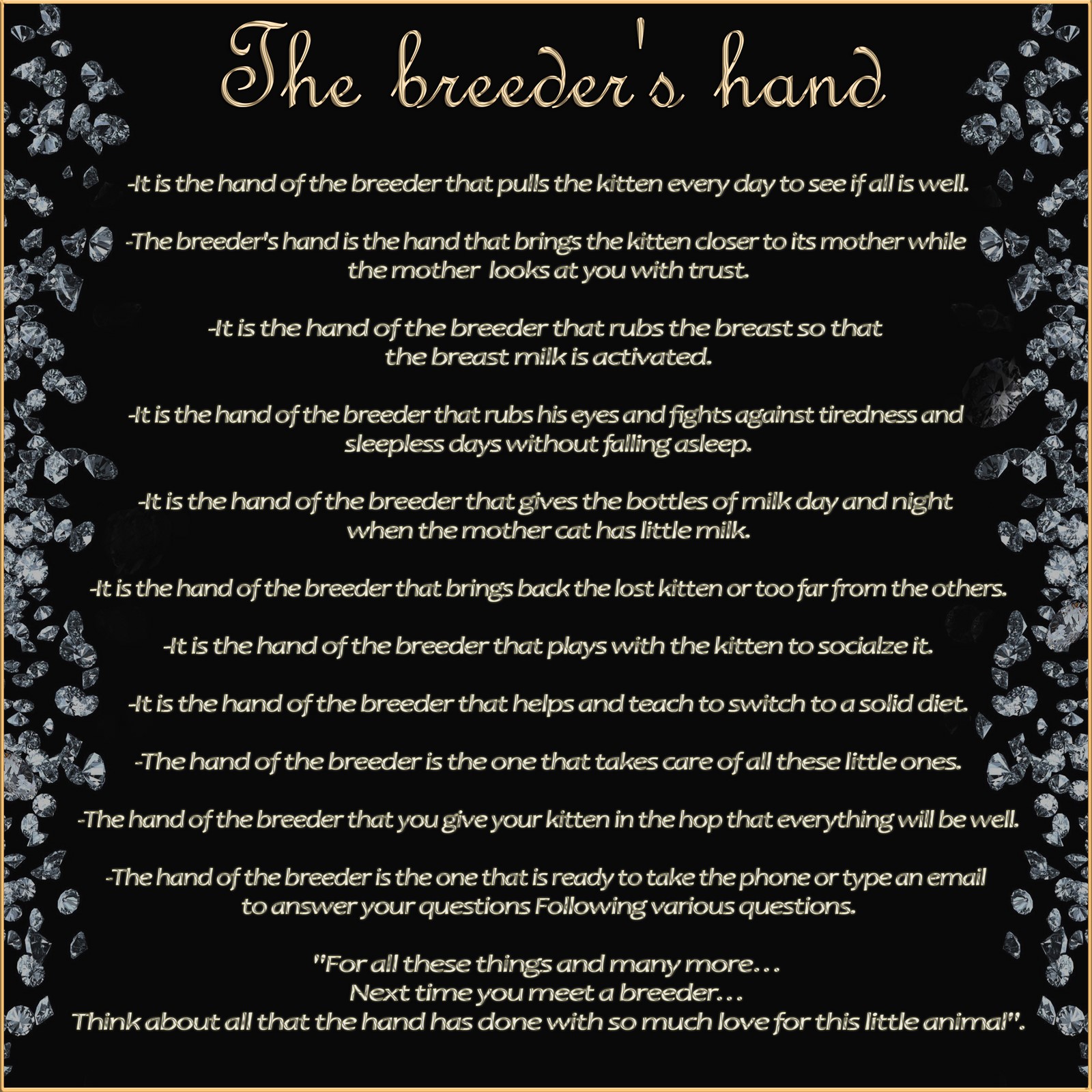 Acknowledgments: Thank you to the breeders who trusted me and to the new owners of my "Alantolie babies", for the photos and the regular news.